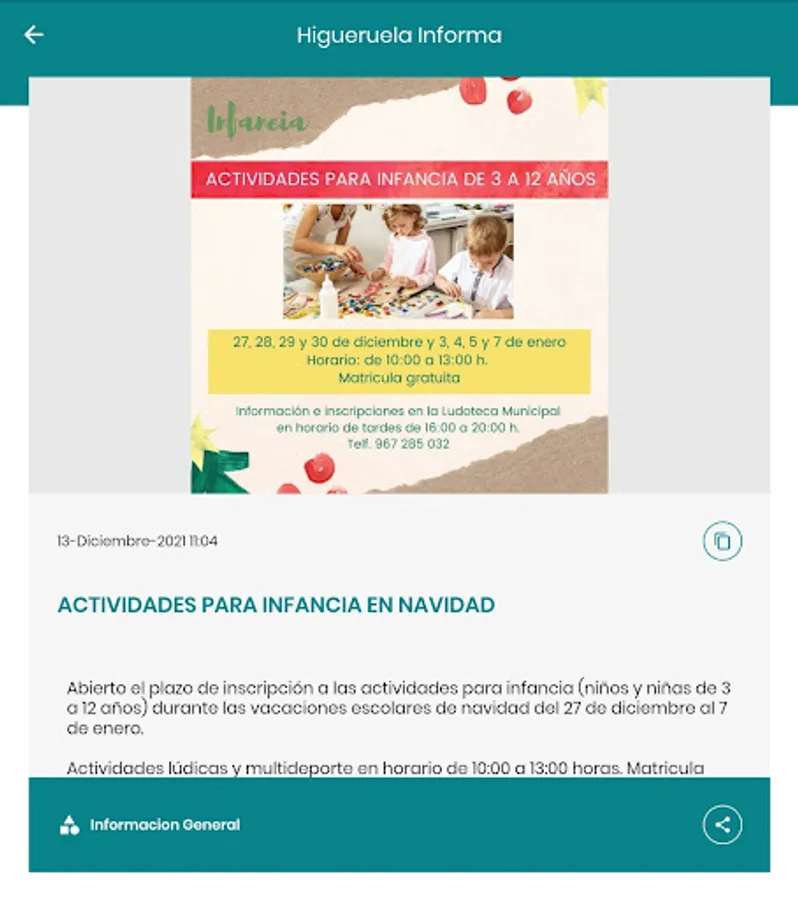 Thanks to this application you will receive on your mobile sides of general interest that the City of Higueruela published.