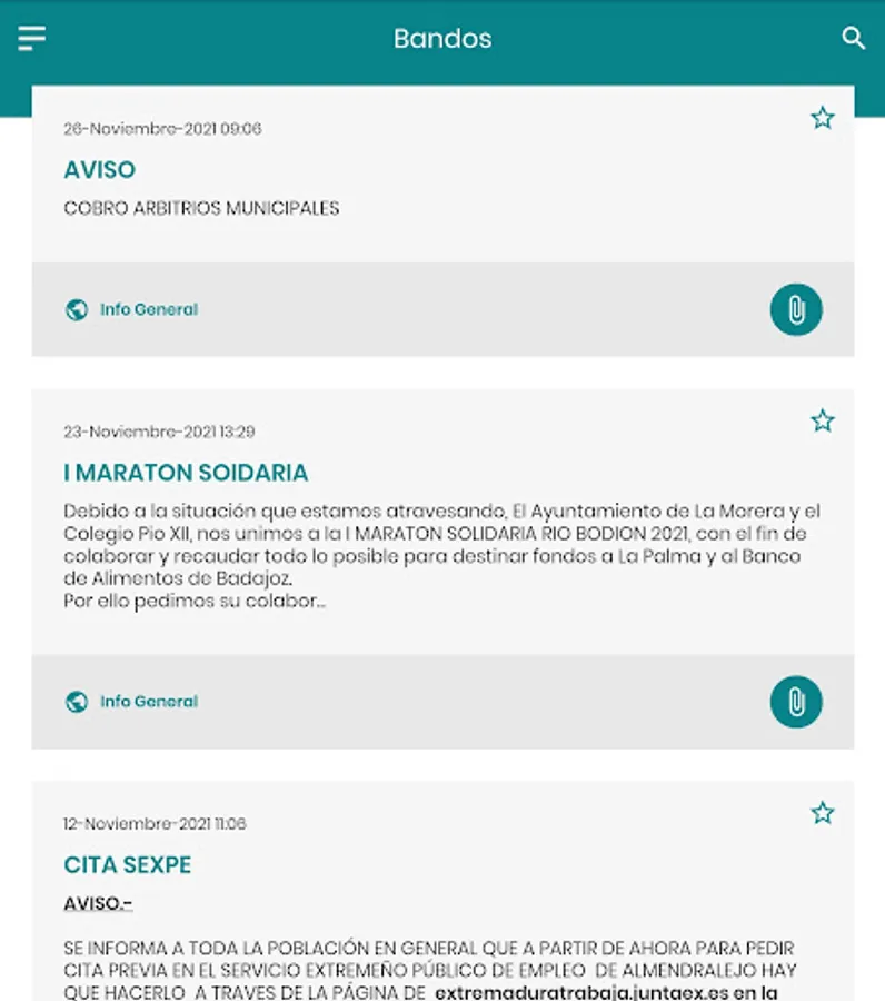 Thanks to this application you will receive on your mobile sides of general interest which the city of La Morera published.