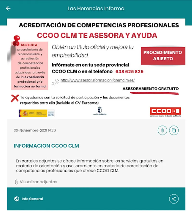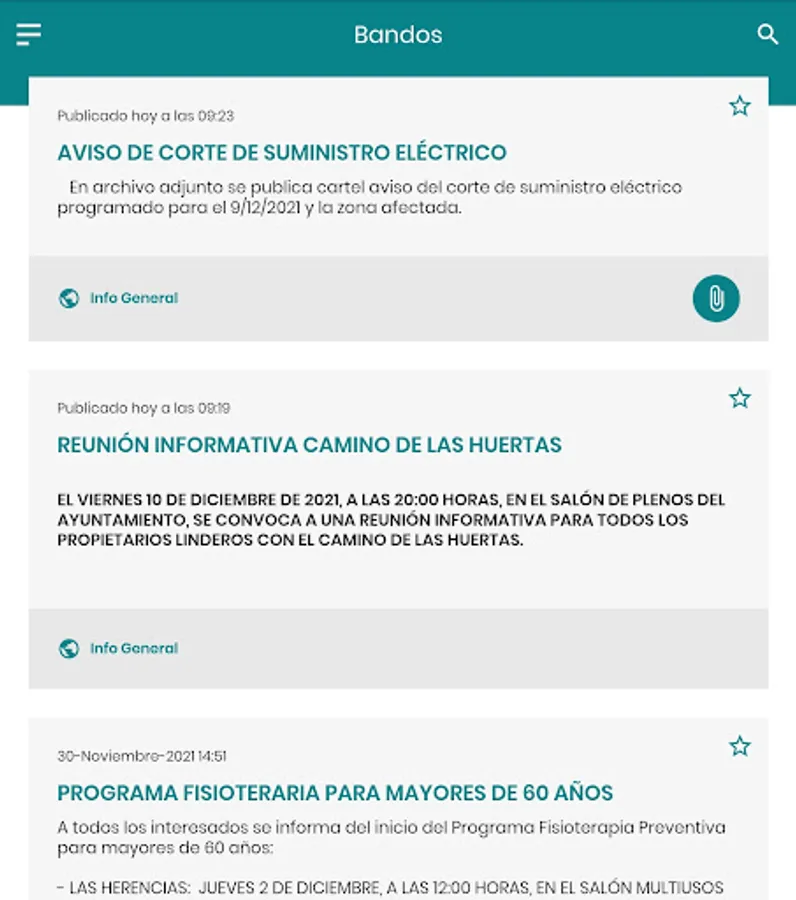Thanks to this application you will receive on your mobile sides of general interest that the City of Las Herencias published.