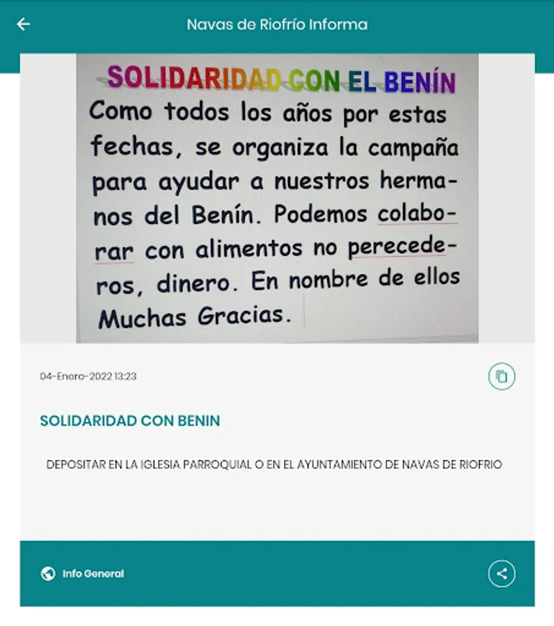Thanks to this application you will receive on your mobile the parties of general interest that the Navas de Riofrío City Council publishes.
