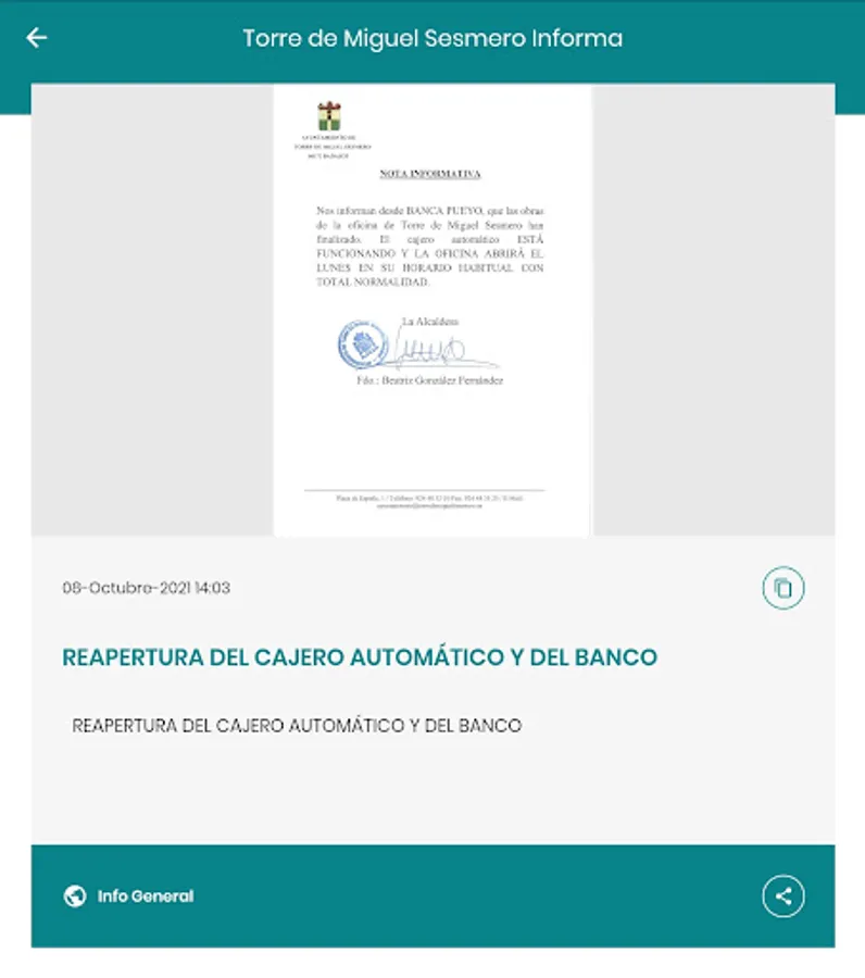 Thanks to this application you will receive on your mobile sides of general interest which the city of Torre de Miguel Sesmero published.