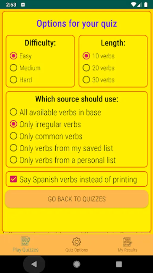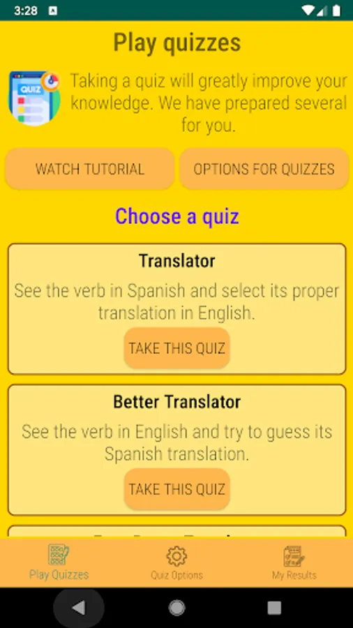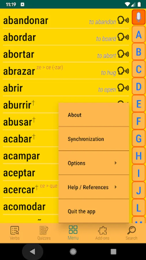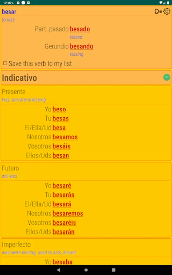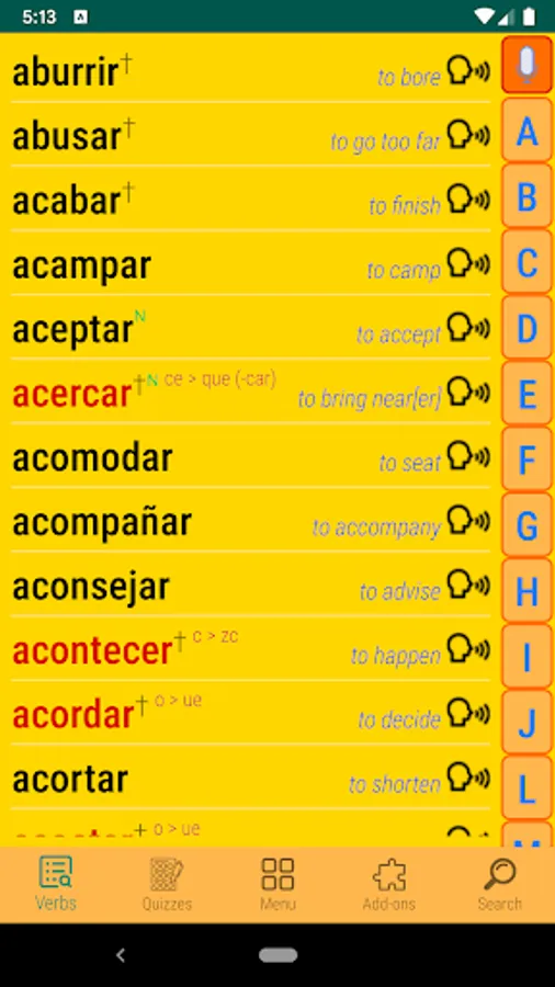 Verbes will help you to improve you Spanish language grammar by providing you with all conjugation forms of the most popular Spanish verbs in indicative, subjunctive and imperative modes. Included grammar reference will help you to better understand Spanish grammar rules. You can also extend your knowledge by playing the quizzes that the app offer which will help you to gain expand you vocabulary. Features like speech recognition and speak-out of verbs and their forms will help you to understand what is the correct pronunciation and train your speaking skills.