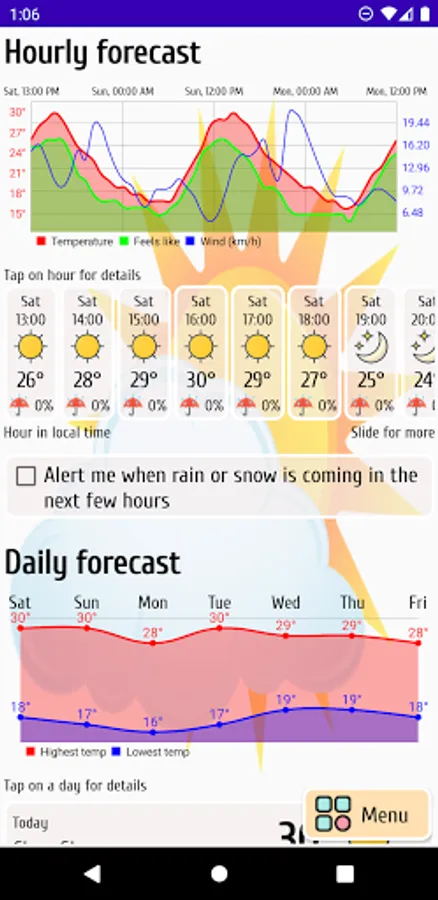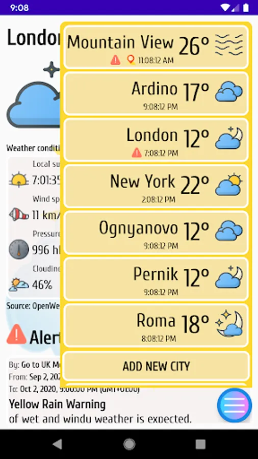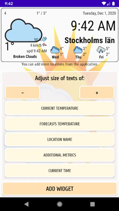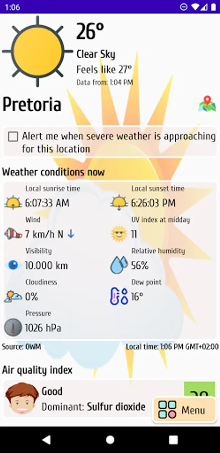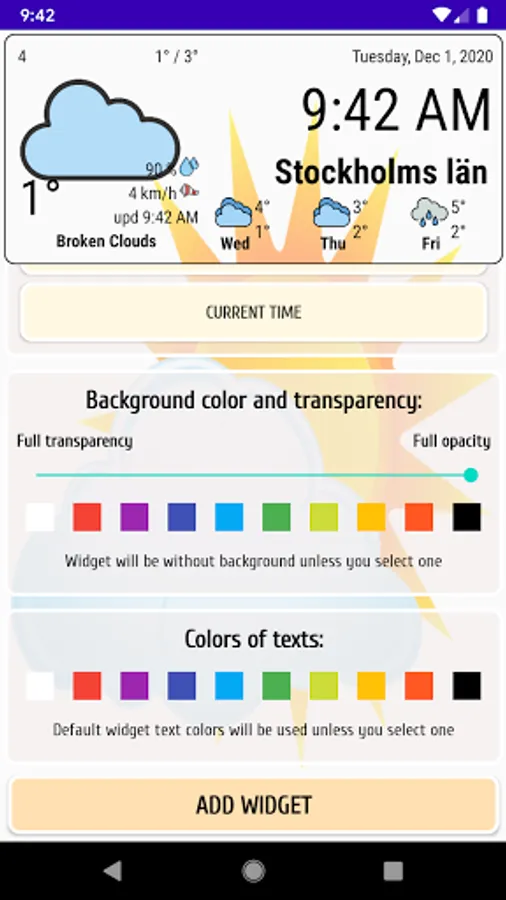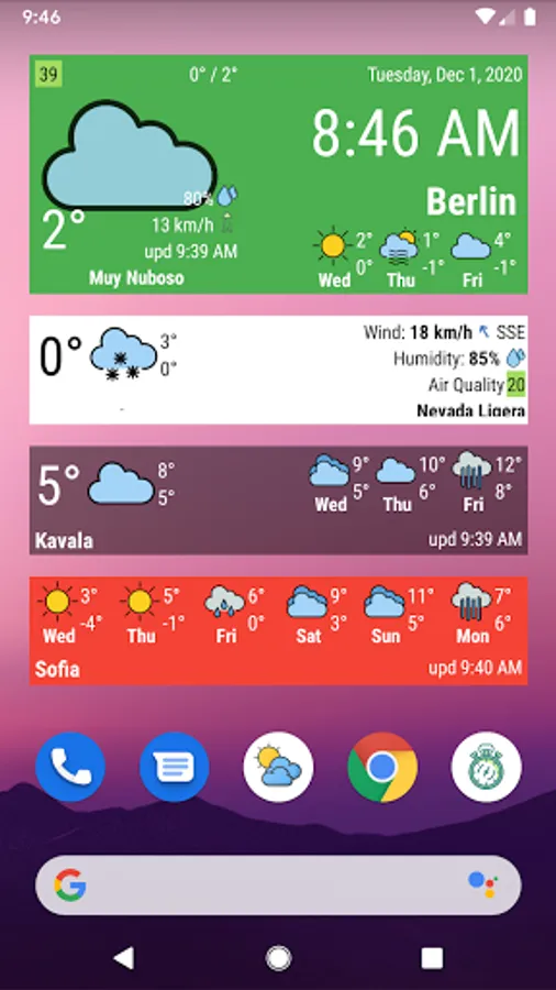 Weather forecasts and indexes of air quality (AQI) for your current location and up to 20 manually chosen locations. Get weather and AQI reports directly on your device and receive notification when bad weather is approaching, air quality drops significantly or the respective government agencies issue weather warnings. There are more than 6 widgets that would allow you to have all important information quickly accessible from the main screen of your device. Additional customizations are possible by downloading extra icon packs, changing colors of widgets and adjusting text sizes.