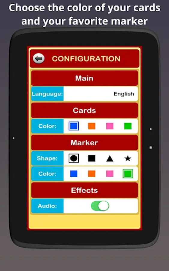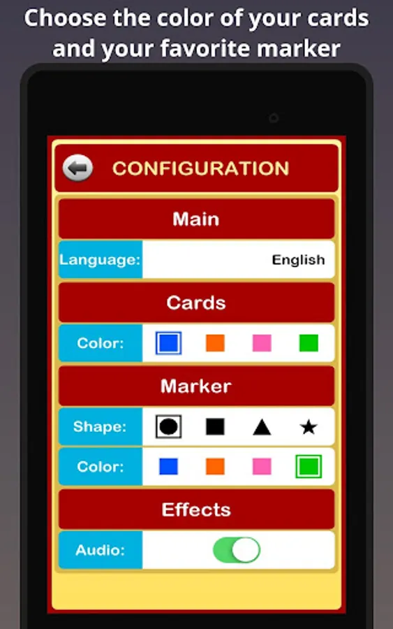 You can choose between 90 or 75 balls bingo cards, you can mark or unmark the numbers called, reuse the same bingo cards or generate new ones for the next game.