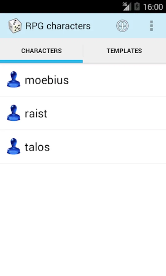 - characters: choose a template, fill the fields;