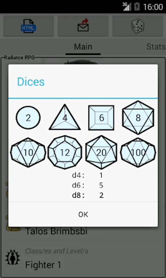 - send characters / templates by email; export characters in HTML;