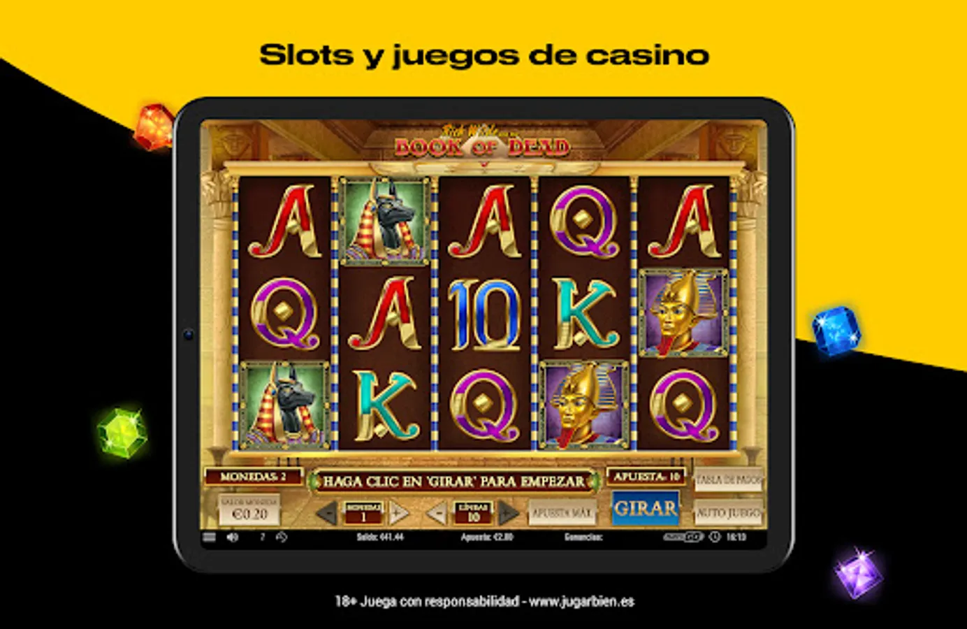 It is a real money gambling app. Please play responsibly and bet only amounts you can afford. For help in gambling addiction, please contact Gamble Aware on the phone or visit www.jugarbien.es.