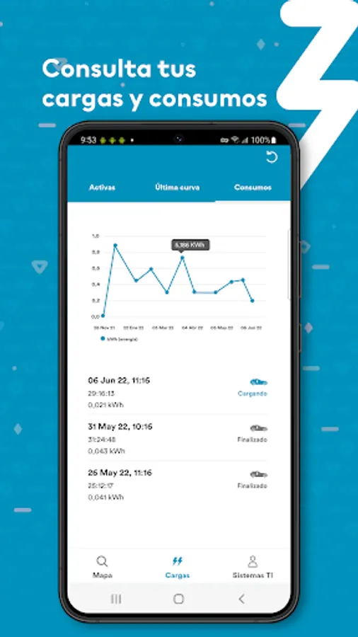 Everything you need to manage the recharging of your electric vehicle in a single, easy, simple and intuitive mobile application: charging start and end time at the selected terminal, issuance of tickets and final invoice, consultation of consumption history. ..