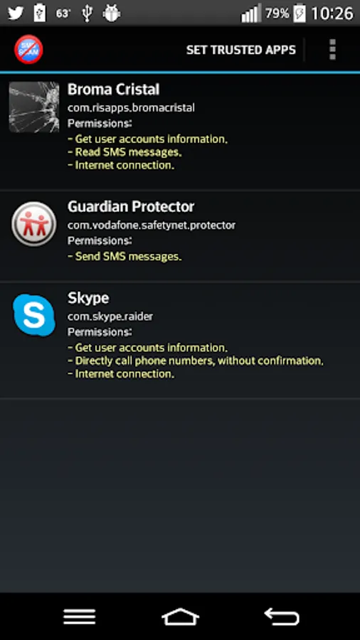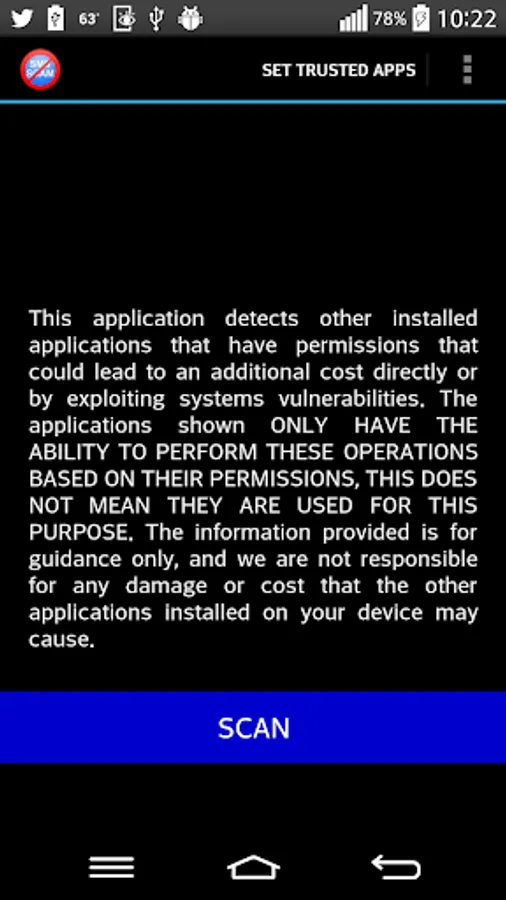 The purpose of this application is to detect applications installed on your device whose permissions might cause additional charges. Also displays a notification if the installation of a suspicious application is detected. (Active Protection).