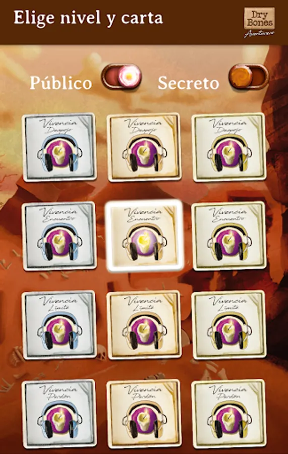 If you already have the game Dry Bones Adventurous this app will help you play with the Charter-Vivencia. We wanted to support this travel experience in the game through songs and music with ethnic touches.