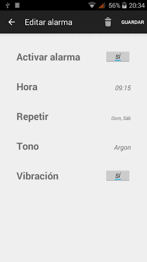 - Activate/deactivate vibration for each alarm.