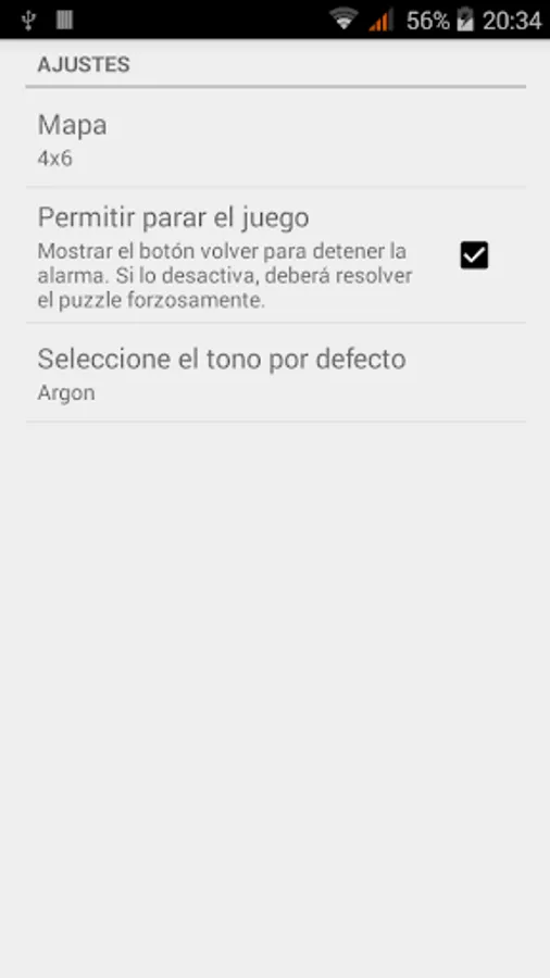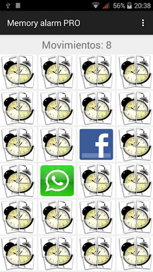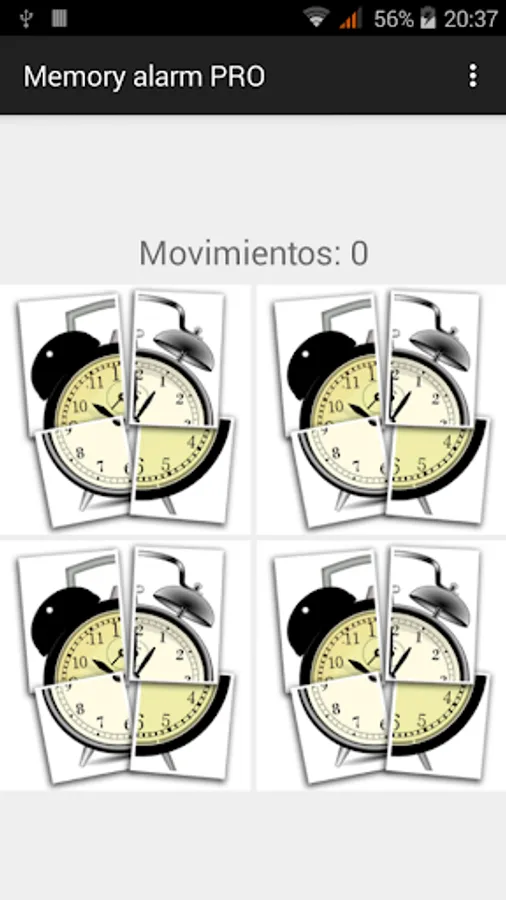 At the specified time the alarm will ring and vibrate at the same time it shows a memory game. You will have to resolve the game in order to silence the alarm. Different difficulties can be set up, from a 2x2 map to 4x6, challenging your asleep brain.