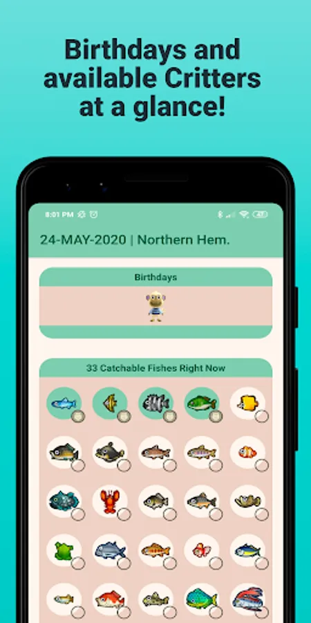 · Daily Birthdays and avaiable Critters at a glance! 🎁