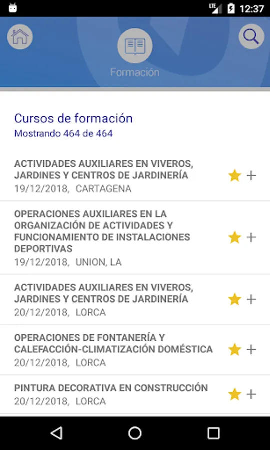 Courses: You can choose between: Preferred municipalities, professional families of interest, attendance or distance courses.