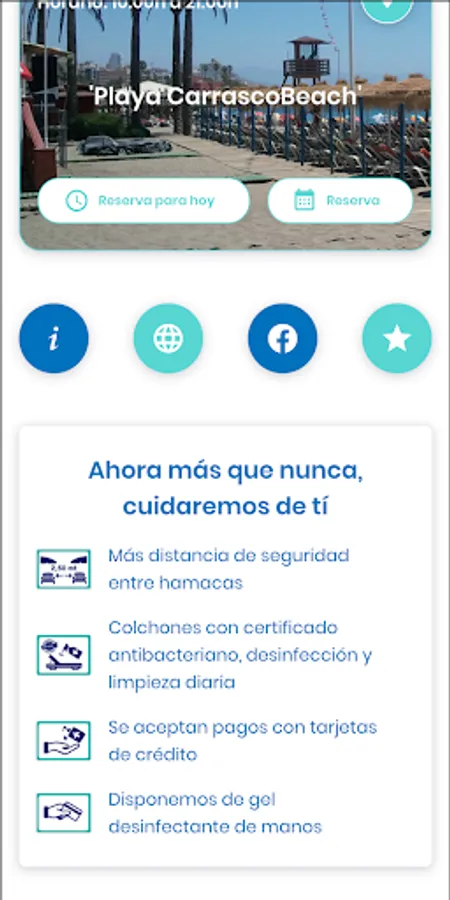 CarrascoBeach has all the necessary services to make your stay as pleasant as possible: bathrooms, showers, lifeguard post, spaces for people with reduced mobility, etc. In an environment with the best beach bars, nautical area, supermarkets, pharmacies, bus and taxi stops, parking and all basic services.