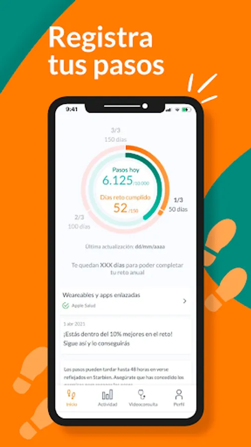 To motivate you to walk, the App challenges you to walk. Because studies show that walking improves your circulation, your quality of sleep and also strengthens your defenses. So we are going to challenge you to take 10,000 steps a day for 150 days. You have one year to get it. And noooo! It doesn't have to be 150 days in a row.