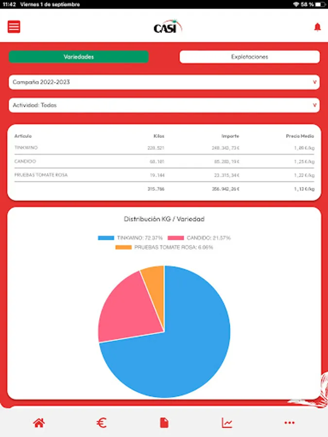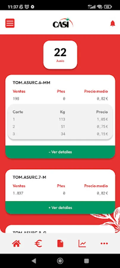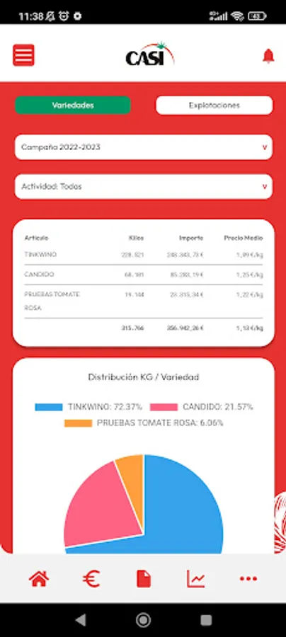 The mobile application of the leading tomato production and marketing cooperative in Europe. Access general content such as news, products, brands, online sales, ... about CASI. For the entity's partners, it offers the possibility of accessing information regarding the movements and results of each campaign. Notifications, messages, alerts,... to improve communication with our environment.