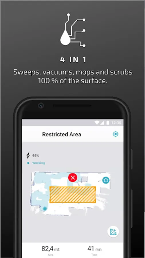 - View your house’s interactive map before starting the cleaning.