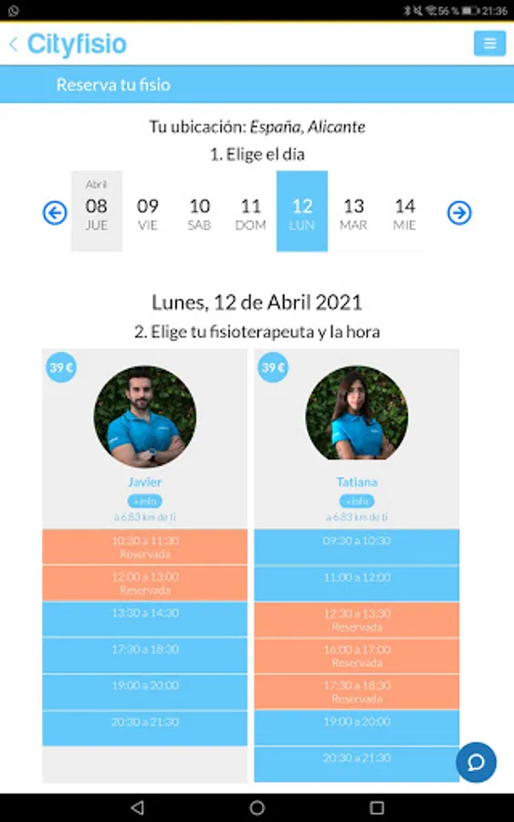 We offer you a service that allows you, in a very comfortable and agile way, to reserve your physiotherapist at a specific time so that he or she can travel to your home.
