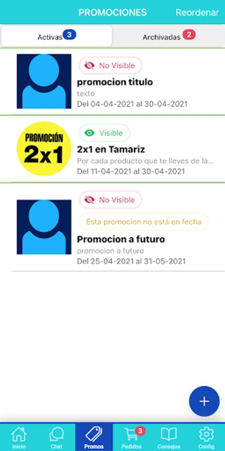 - Share the promotions of your pharmacy: you can upload the promotions that you consider, categorize them and notify your patients. It is very simple, just upload a photo, enter the text and indicate the active dates
