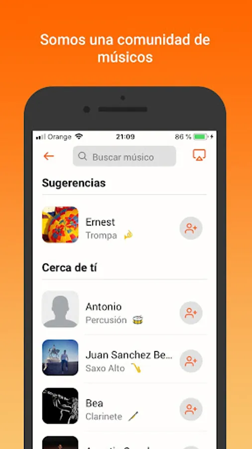 In Clementinapp you can meet musicians and groups from your city or any part of the city, contact them and start a project together.