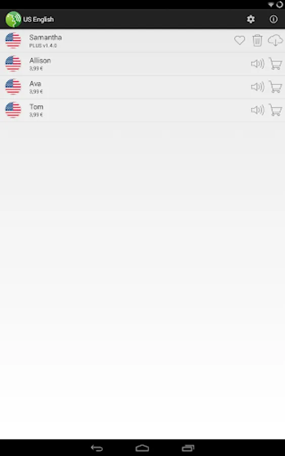 - Each voice can be purchased through a simple In-App purchase process. App includes a 7 days trial to test voices.