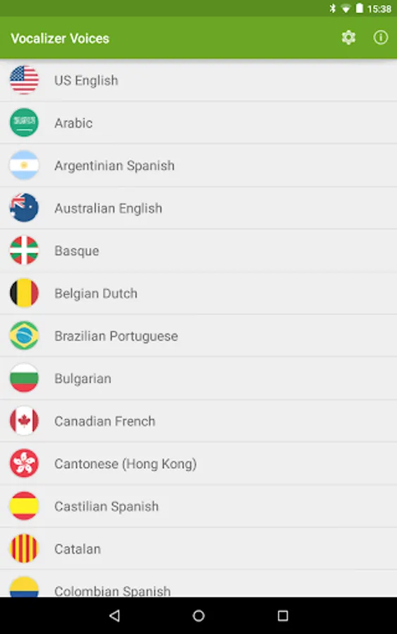 US English, Australian English, Indian English, Irish English, South African English, Scottish English, UK English, Argentinian Spanish, Castilian Spanish, Chilean Spanish, Colombian Spanish, Mexican Spanish, Arabic, Bengali, Bhojpuri, Catalan, Croatian, Basque, Galician, Dutch, Belgian Dutch, Kannada, Portuguese, Brazilian Portuguese, Bulgarian, French, Canadian French, Cantonese (Hong Kong), Mandarin, Mandarin Taiwanese, Czech, Danish, Finnish, German, Greek, Hebrew, Hindi, Hungarian, Indonesian, Malay, Italian, Japanese, Korean, Marathi, Norwegian, Polish, Romanian, Russian, Slovak, Swedish, Thai, Tamil, Telugu, Turkish, Ukrainian, Valencian.