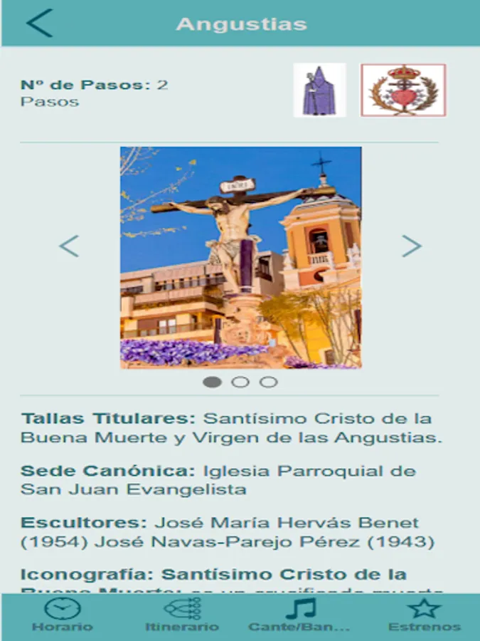 Indication of the zones and times of cante de saetas of each procession.