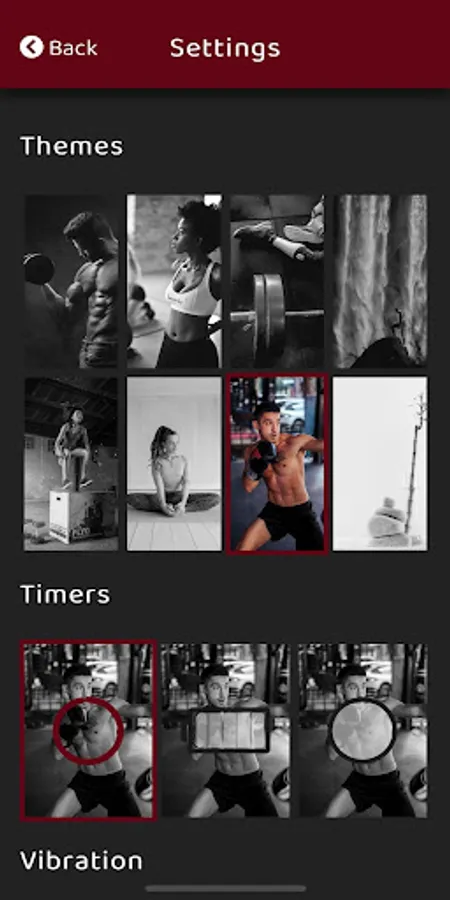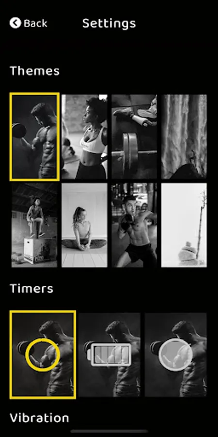 Includes multiple themes and sounds for both active and relaxing activities like Yoga or Pilates that might required smoothier sounds, backgrounds and animated watches, including vibration.