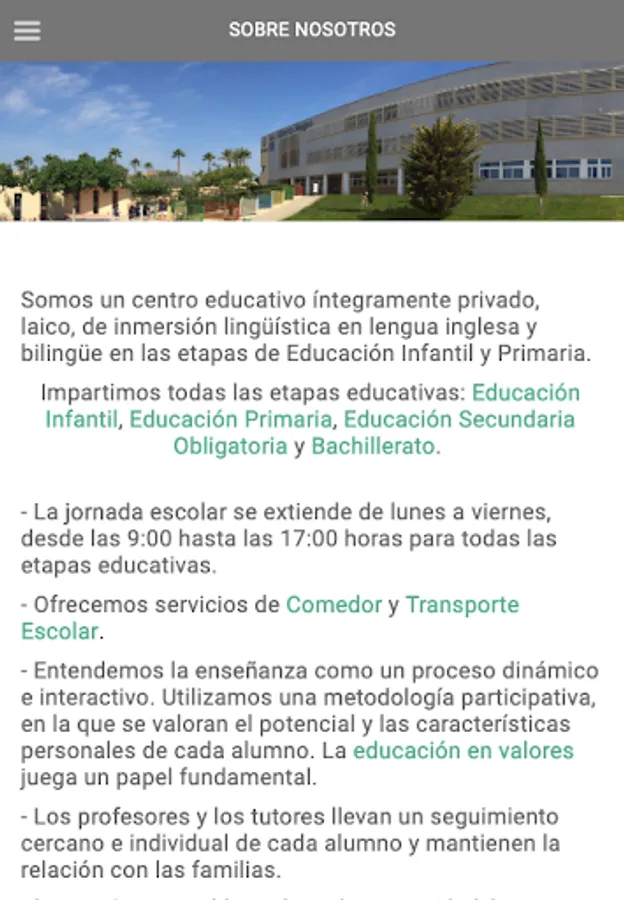 We are a completely private, secular, linguistic immersion center in English and bilingual in the stages of Early Childhood and Primary Education. We teach all educational stages: Infant Education, Primary Education, Compulsory Secondary Education and Baccalaureate.