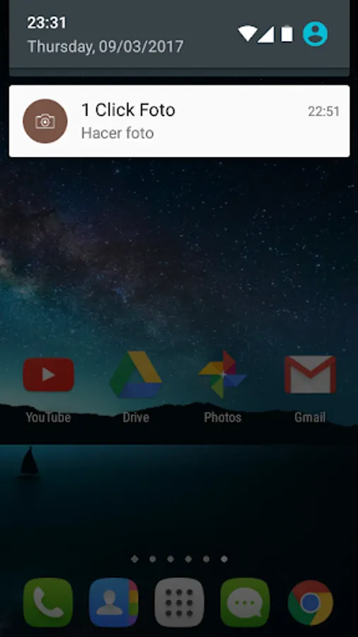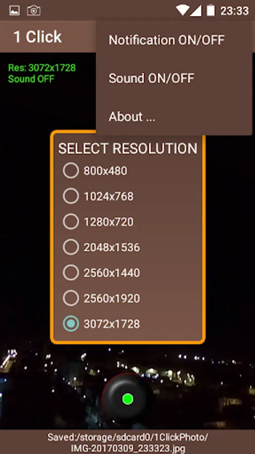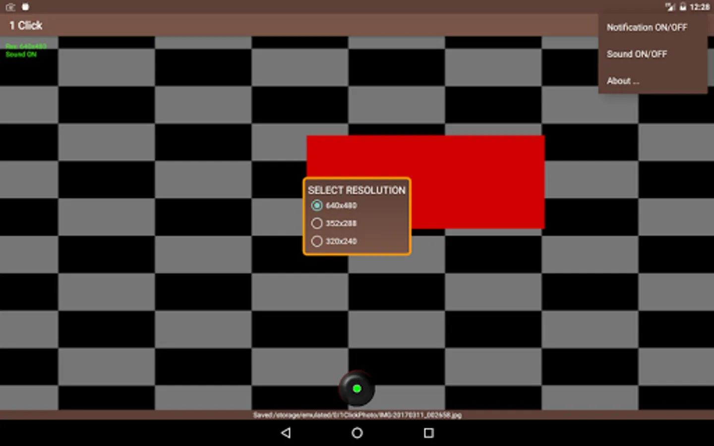 The application will open and take a photo quickly and will be saved in the 1ClickFoto folder of your device's external storage.