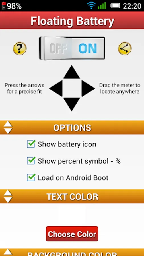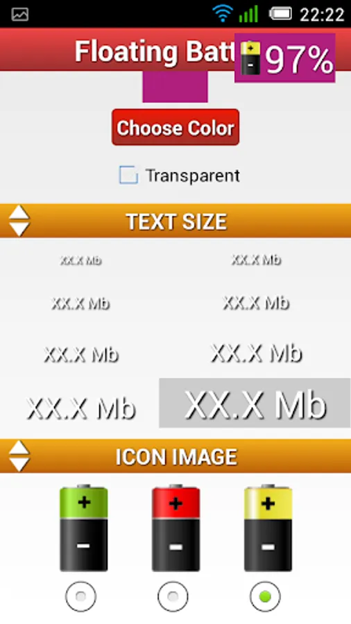 It shows anywhere on the screen the percentage of battery remaining for your phone or tablet.