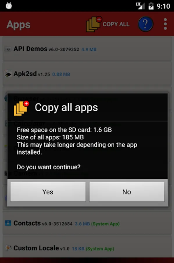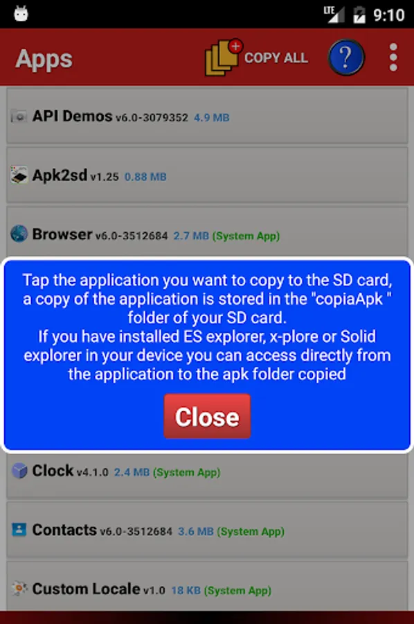 The apps will be stored in the "copiaApk" directory of the sd card from your mobile.