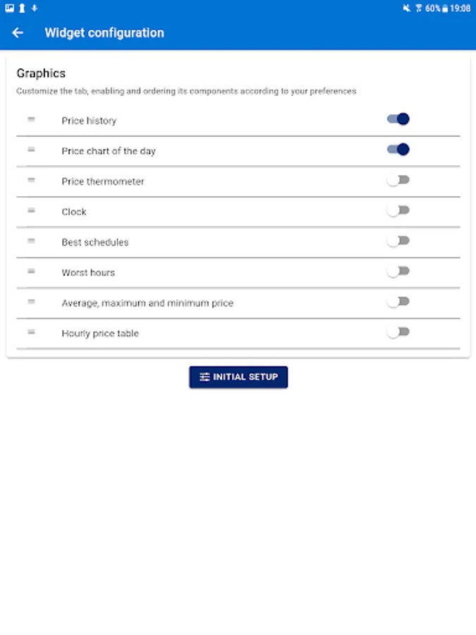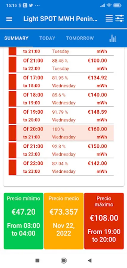 For this purpose, we provide you with different visual components (widgets) that will allow you to control in a very simple and intuitive way the prices of the day as well as the prices of the following day, from the time of their publication.