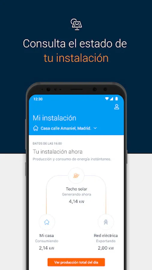 If you are already a Solar360 customer and your solar panels are installed, download the Repsol and Movistar Solar360 app and you will have all the information about your solar panels in the palm of your hand.