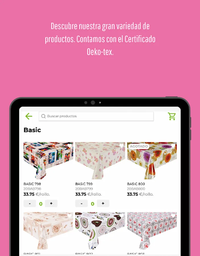 We offer a wide variety of tablecloths and different collections of floor products and household items.