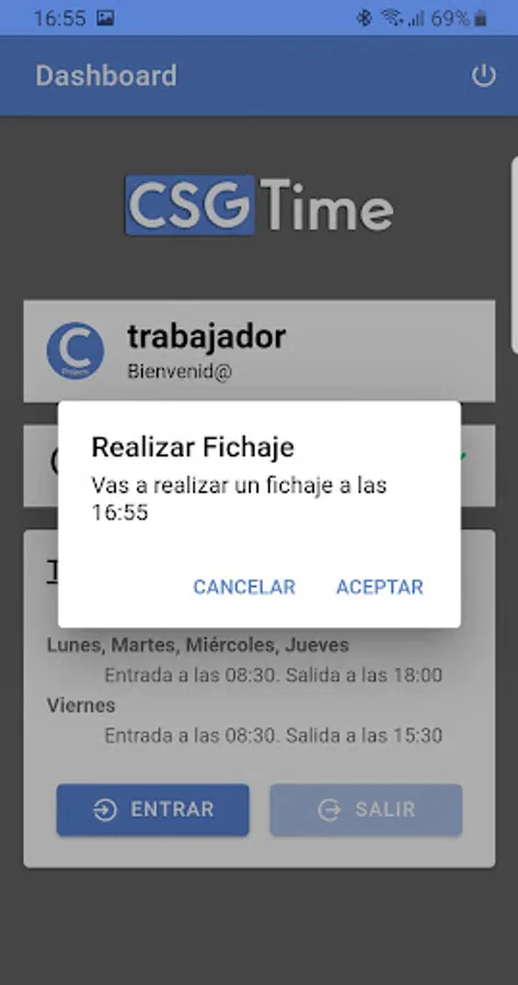 Make sign-ups of entry and exit on established shifts. Control of the employee's workday.