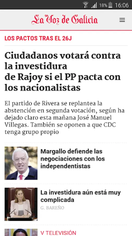 - All sections: Galicia, Opinion, Sports, Economy, Society, Culture, Spain, International, Technology, Television, Time and all supplements Voice.