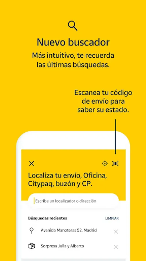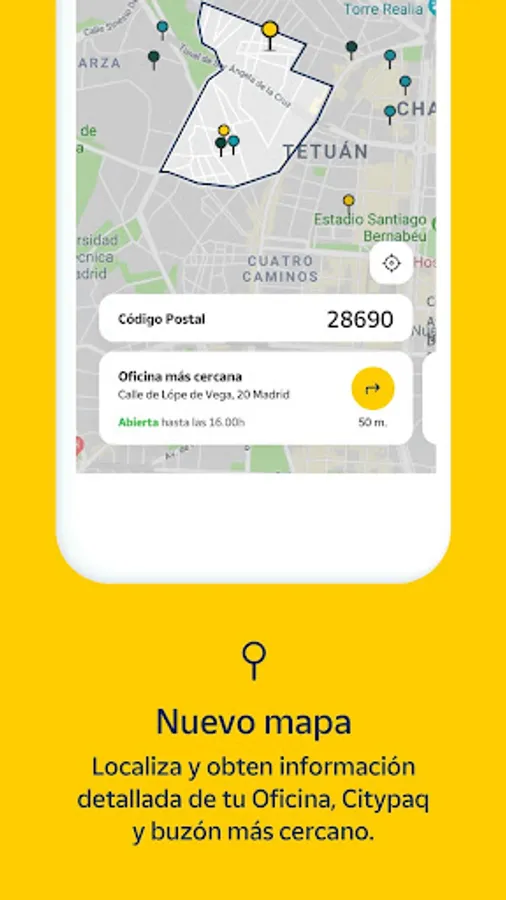 Manage the sending and receiving of your packages from the Correos App. Check the status of your orders or change the delivery address. Geolocate from the App your Post Office, Citypaq or mailbox closest to your location or at the address you need.