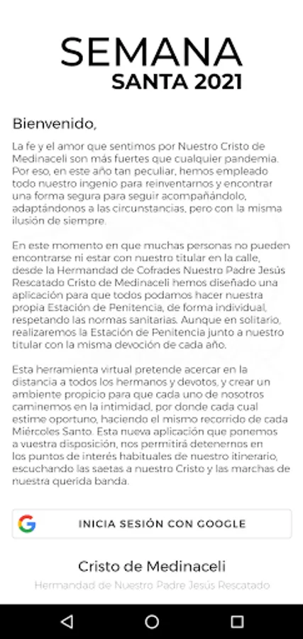 At this time when many people cannot meet or be with our owner in the street, from the Brotherhood of Cofrades Nuestro Padre Jesús Rescatado Cristo de Medinaceli we have designed an application so that we can all make our own Penance Station, individually, respecting sanitary regulations.