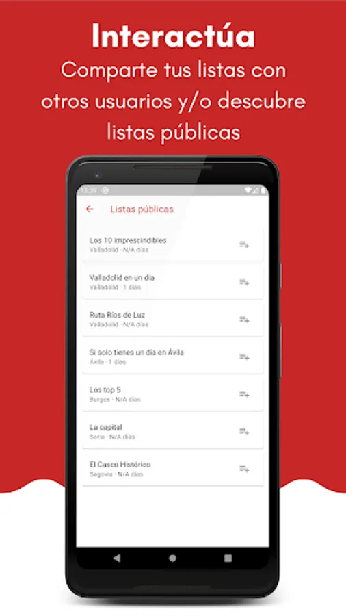 It is possible to save the elements in lists to facilitate the planning of the stay by the autonomous community.