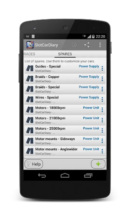 With this application you will be able to store all data of your cars, tracks, drivers, builds, spares and races in a centralized repository.