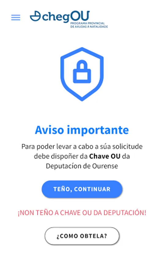 With this application you will be able to request the aid of the Provincial Program of Chegou Aid of the Benestar Area of the Diputación de Ourense, as well as know in real time its status of processing and resolution. With this application you will also have access to published resolutions and location information for pharmacies in the province of Ourense.