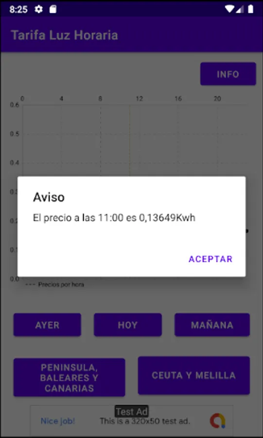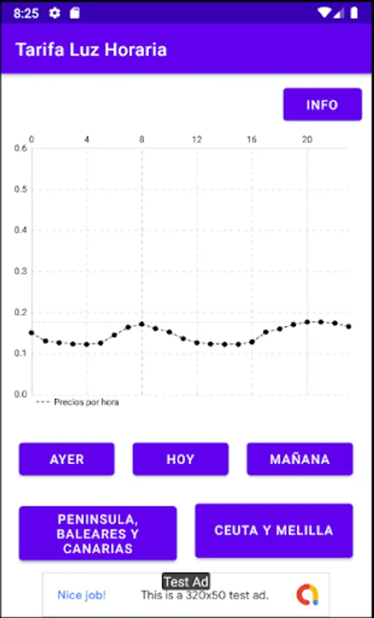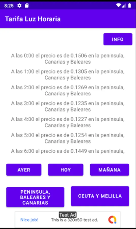 Application that allows the user to see the prices that the electricity will have each hour of the day, he will also be able to check the prices of the previous day and, if it is after 20:15, he will be able to see the prices of tomorrow.
