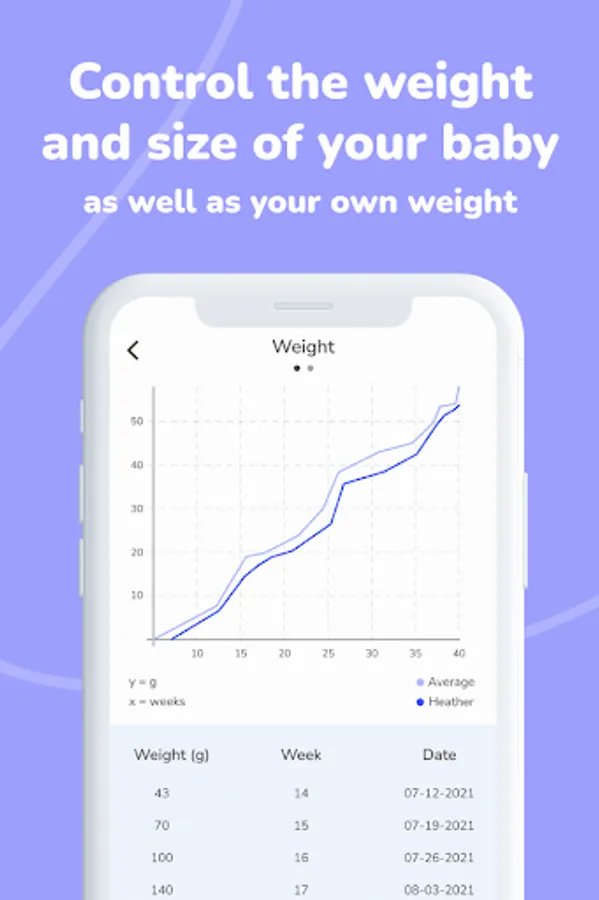 Easily record your baby's weight and size progression during pregnancy and compare it visually with the normal average on a chart.