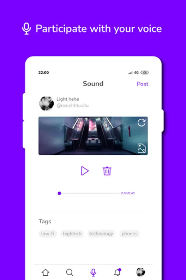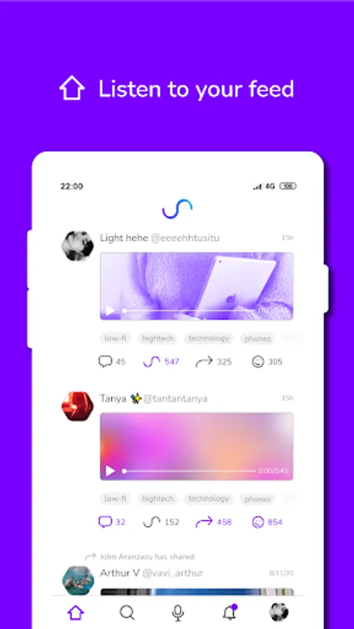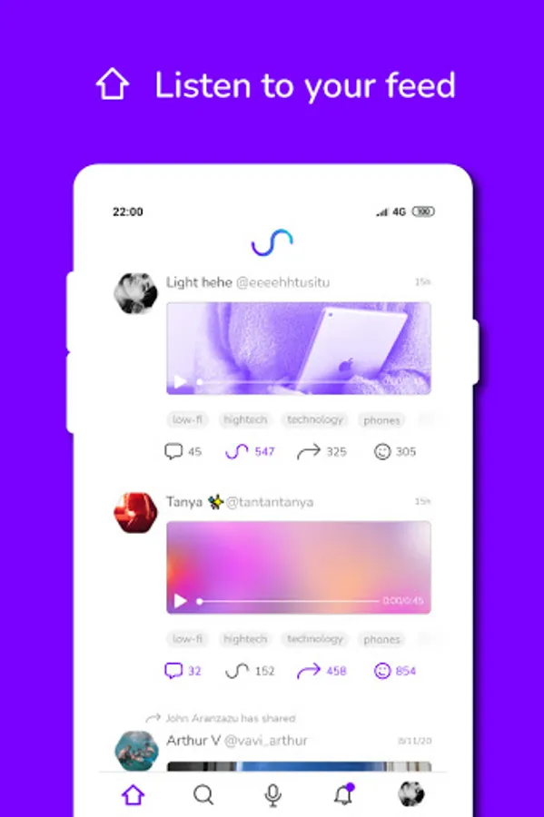 Join the community! π₯ Soundn is a voice social app that allows you to be aware of what your friends want to tell. Latest news, music, sports, technology, latest trends ... tell what you want through eloquent voice memos. Find your friends and follow influential people: everyone will be able to listen to your voice records and audioblogs!