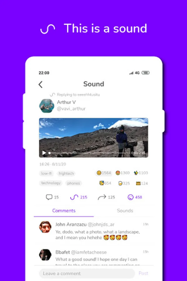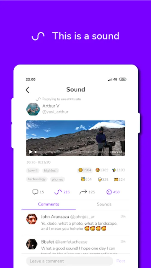 This is a social network to meet people, to share voice notes, and share sounds with motivation.