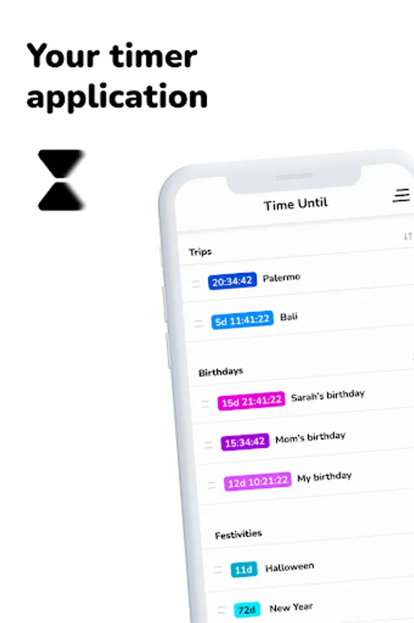 With Time Until you can count how many days are left and how long until you achieve your goals or how much time is left before you finish something, with an elegant and minimalist design. Create timers that count the time remaining until your wedding, birthday or whatever you want ๐