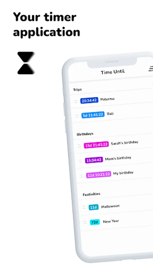 With Time Until you can count how many days are left and how long until you achieve your goals or how much time is left before you finish something, with an elegant and minimalist design. Create timers that count the time remaining until your wedding, birthday or whatever you want 📅