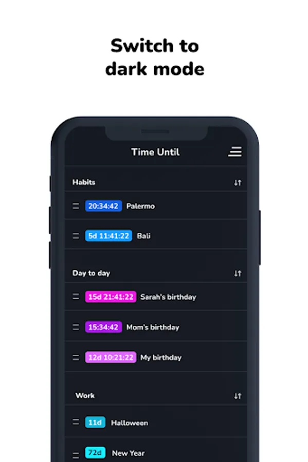 Track the time remaining to meet your goals with countdowns in Time Until!